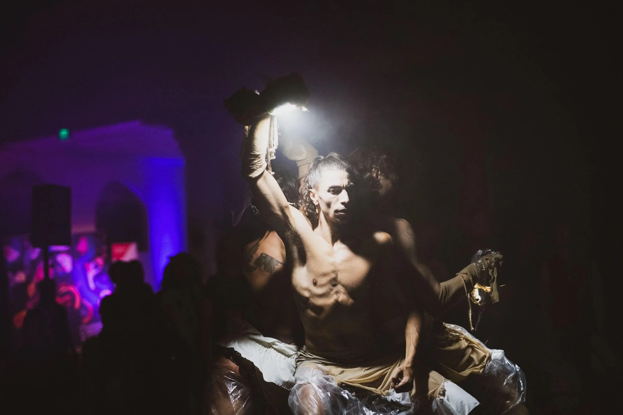 “Hot & Heavy is a speculative fabulation that imagines non-binary, de-capitalised, and post-extractive futures. The show is an immersive aural, visual, and sensory experience that invites audiences to lose themselves, to go deep, and to shake free. Within this queer new world, the familiar terrain of domestic life is made strange: appliances are hacked and reimagined, the horror of human production lines and capitalist consumption is reframed, and the dance floor becomes a site of protest, pleasure, and collective power.